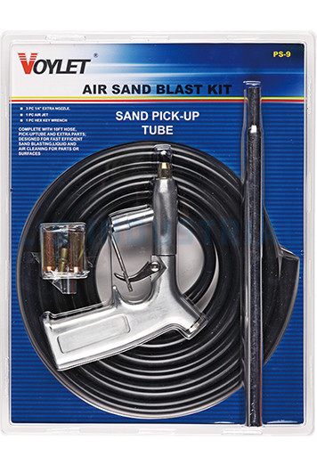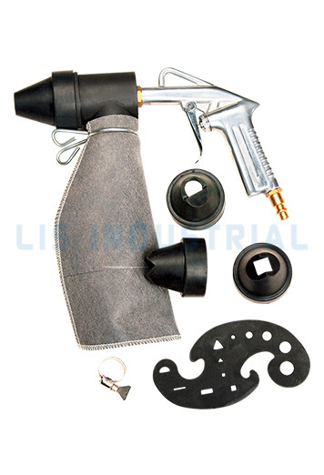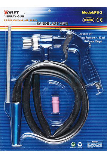 sandblasting gun is a tool that uses compressed air to shoot a stream of abrasive particles, such as sand, at high speeds to remove paint, rust, and other substances from surfaces. The sand or abrasive particles are typically loaded into a hopper or canister and fed into the gun through a hose. The compressed air flow then accelerates the particles and directs them toward the surface to be cleaned, where they etch away the unwanted material. Sandblasting guns are commonly used in industrial and automotive settings to clean and prepare surfaces for painting or coating. They can also be used for decorative purposes, such as creating frosted glass or etching designs onto metal or stone. Sandblasting guns are often paired with a protective hood and other personal protective equipment to protect the operator from the abrasive particles and debris generated by the sandblasting process.